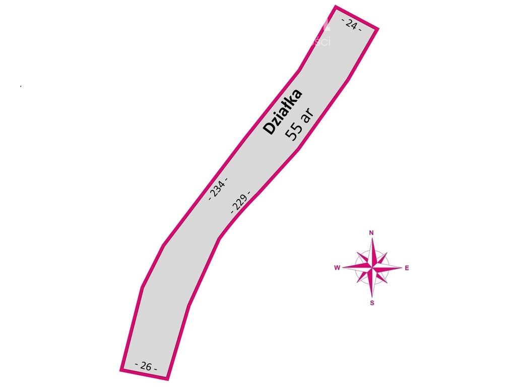 Działka nr 116/3 ma powierzchnię 0,55 ha (55 ar) i kształt